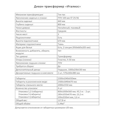 Диван-трансформер Италмас (Аквилон) продается в интернет-магазине mebel-online-bryansk.ru по цене 73 376 руб. Есть доставка по Брянску и Брянской области. Возможность подъема на этаж и сборки уточняйте у менеджера по телефону 8(800)505-27-11.